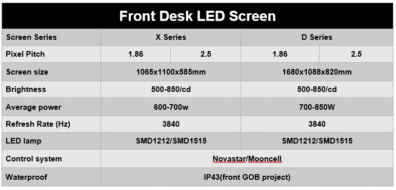 The LED Reception Screen is a curved LED display desk that integrates technology and fashion, serving as an ideal solution for modern advertising. Designed specifically for displaying logos and dynamic videos, it is equipped with advanced electronic functions and supports content customization.This product is perfectly suited for scenarios such as corporate receptions, exhibition booths, and conference events.
